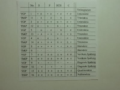 Durch die Spaltungen und Zergliederungen des Urprofils ergeben sich die nachstehenden 64 Vektorbilder, d.h. die „64 Bausteine“ der menschlichen Schicksalspläne. Sie sind in der folgenden Tabelle in einer funktionalen, d.h. die polare Vorder-und Hintergängerdynamik berücksichtigenden Einteilung wiedergegeben.